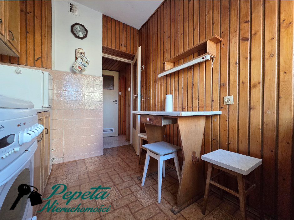 – kuchnia – na podłodze linoleum, na ścianach płytki/boazeria drewniana,