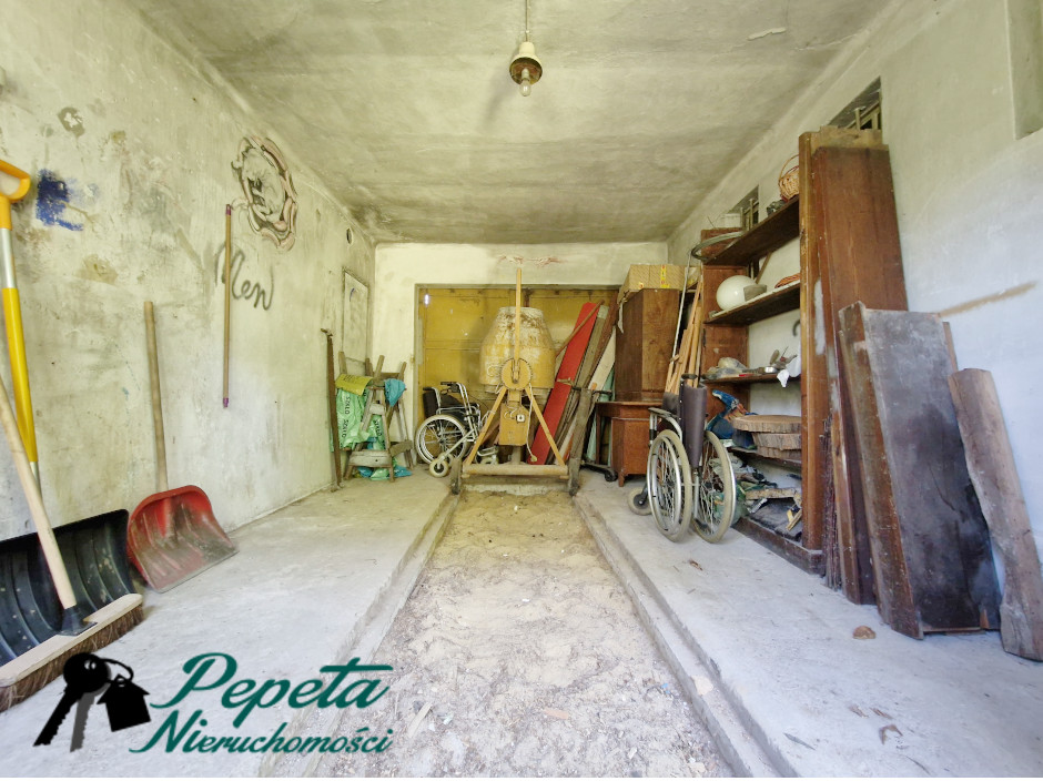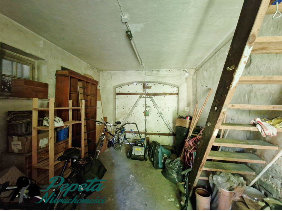 – dwa oddzielne garaże – każdy po 17 m2 (jeden z nich posiada wysoki strych nad całą powierzchnią, drugi posiada kanał),