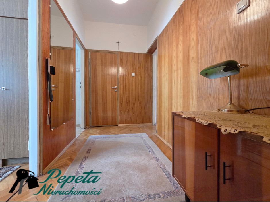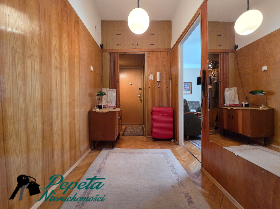 – obszerny korytarz (składający się z przedsionka z szafą w zabudowie oraz większej wygodnej części z pawlaczem, prowadzącej do kolejnych pomieszczeń).