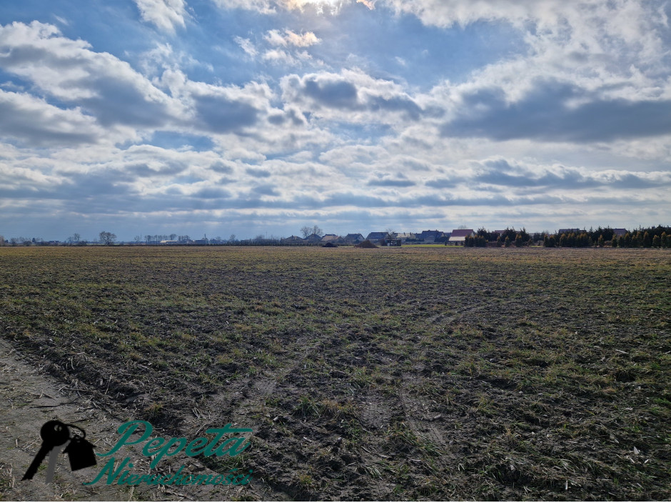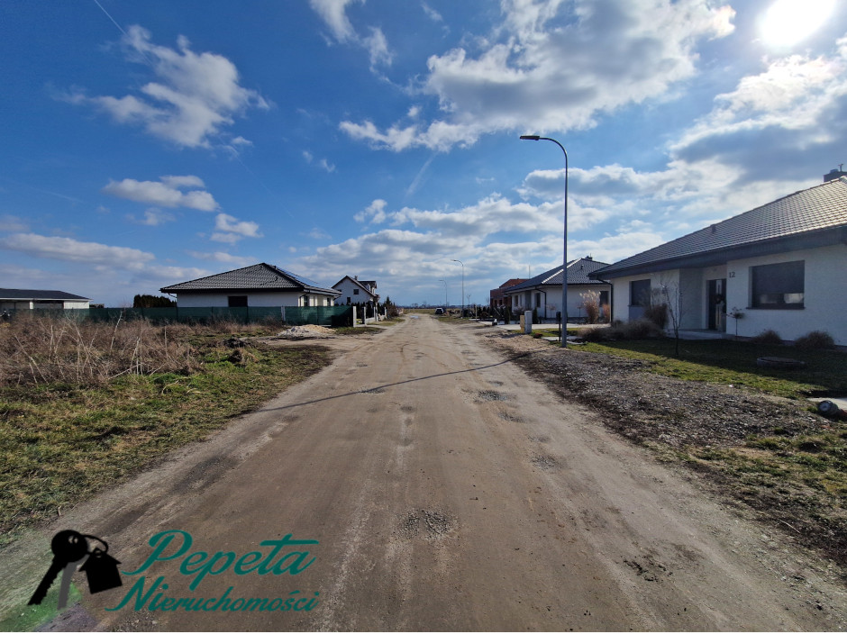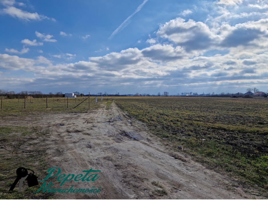 Teren działki pusty, płaski, bez nasadzeń, bez ogrodzenia.