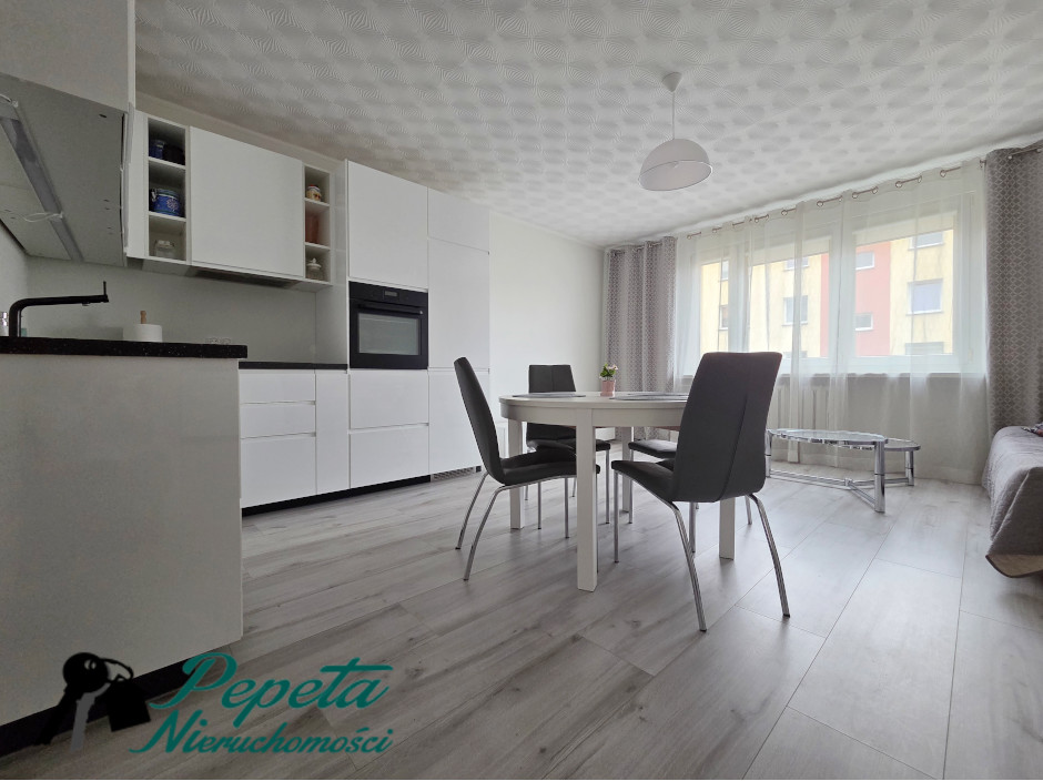 Mieszkanie jest bardzo jasne, świetnie doświetlone (wystawa słoneczna). Klimatyczne wnętrza z funkcjonalnym układem pomieszczeń. W cenie pozostaje pełne wyposażenie widoczne na zdjęciach. Kuchnia w nowoczesnej zabudowie ze sprzętem AGD (lodówka z zamrażarką, piekarnik, okap, płyta indukcyjna + stół z krzesłami, przestronna łazienka z kabiną prysznicową, WC, umywalką i pralką. W przedpokoju stojak z wieszakiem i półkami na obuwie. Umeblowanie salonu i sypialni, oświetlenie mieszkania, zasłony i firanki – również w cenie.