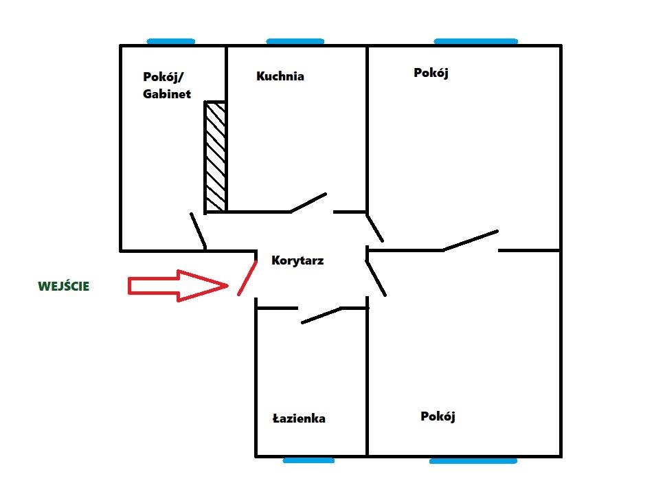 Mieszkanie z całkowicie niezależnym układem pomieszczeń. Dwa pokoje bardzo przestronne, jeden mniejszy, ale ustawny (spokojnie pozwoli na aranżację pokoju dziecięcego lub gabinetu). Wnętrze wymaga remontu, ale układ daje ogromny potencjał aranżacji. Lokal czeka na nabywcę, który nada mu nowe życie.